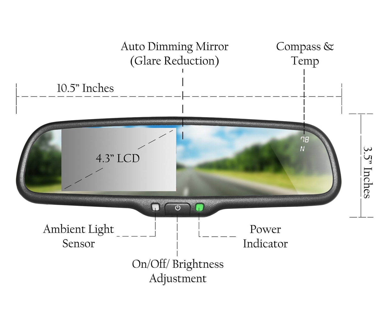 [SCREEN]: 4.3" TFT Ultra High Brightness LCD - Auto Adjusting Brightness with AUTO DIMMING MIRROR